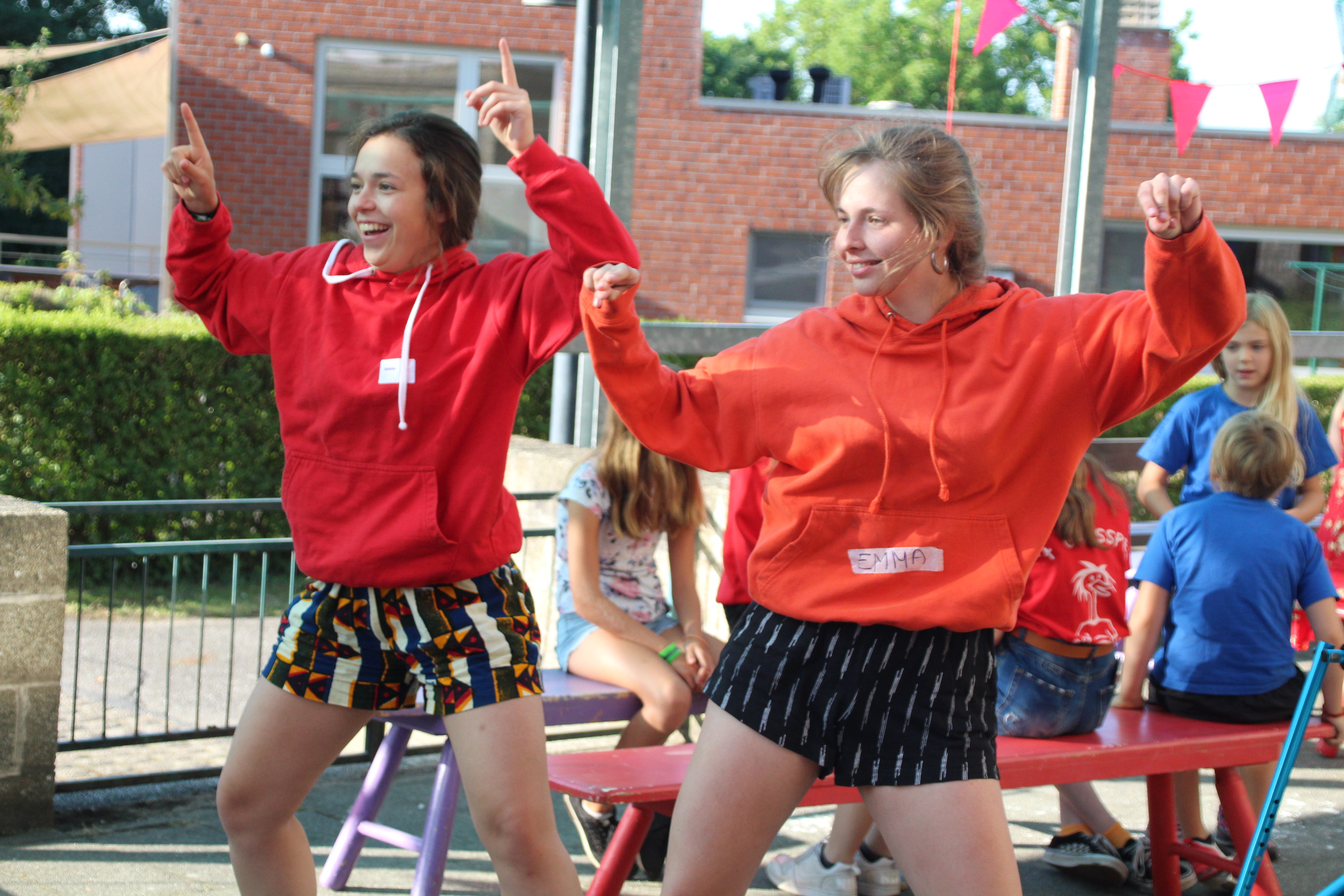 Weer een dag voorbij op ’t Gansspel vol met nieuwe toneeltjes en (vuile) activiteiten. 😉 Misschien zijn de kinderen vandaag “bodypainted” thuisgekomen of misschien wel met een boeketje zelfgemaakte bloemen. Vandaag konden de kinderen dus kiezen uit een boeket bloemen knutselen met crêpepapier, bodypainting, een fotoshoot voor de trouw, drakenland, Cluedo, apenkot… Natuurlijk stonden ze weer allemaal in teken van Gans Getrouwd Benelux want vandaag was het de grote dag voor Hans Gans en Kimmy. Ook al liep die niet zoals gepland af: